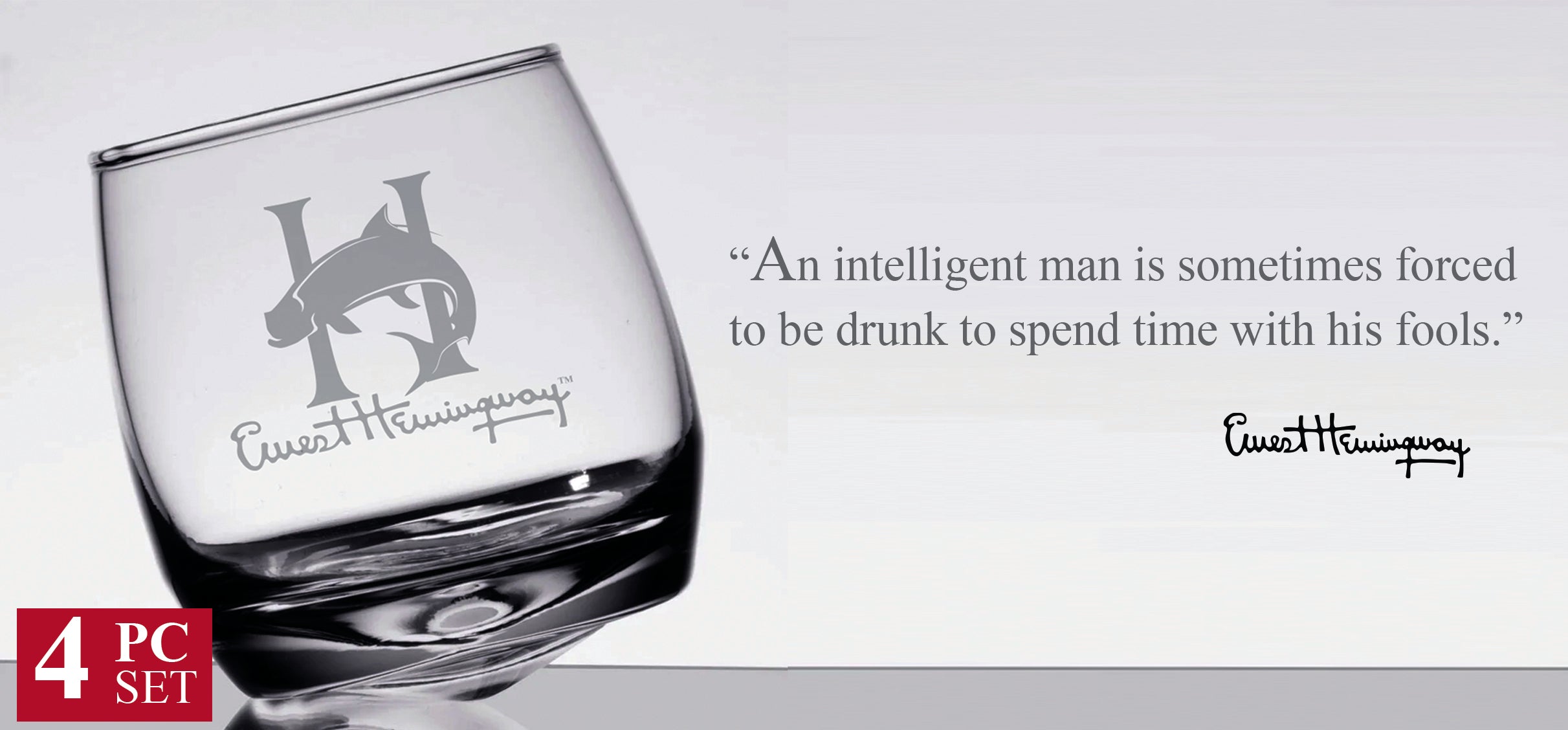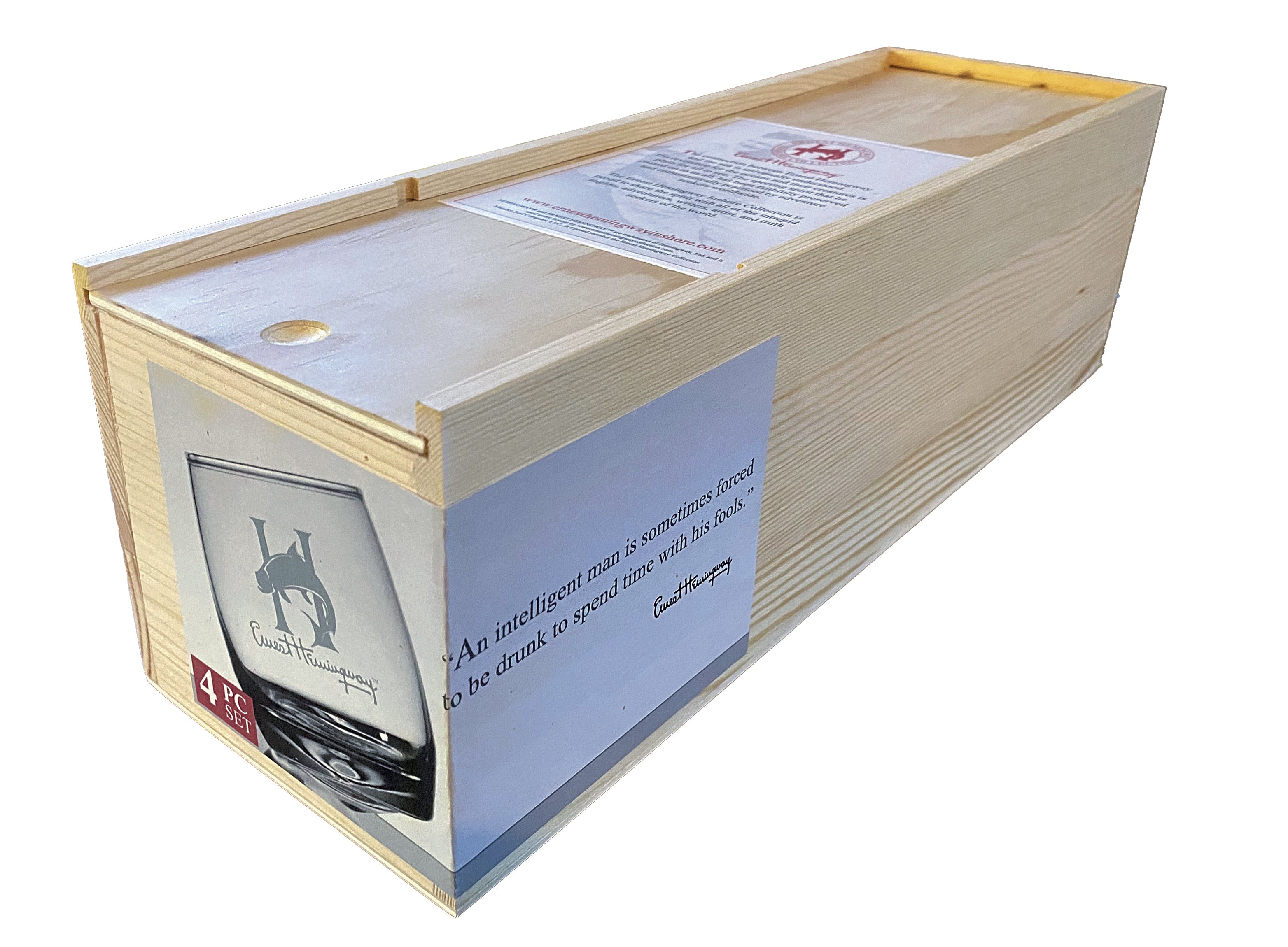 This limited-edition set includes four 9.5-oz wobble glasses, each etched with the H-Tarpon Inshore logo. Perfect for enjoying cocktails, these elegant glasses add a touch of adventure and style to any occasion. Made in the USA and presented in a wooden box, they make an excellent gift for Hemingway fans and collectors.